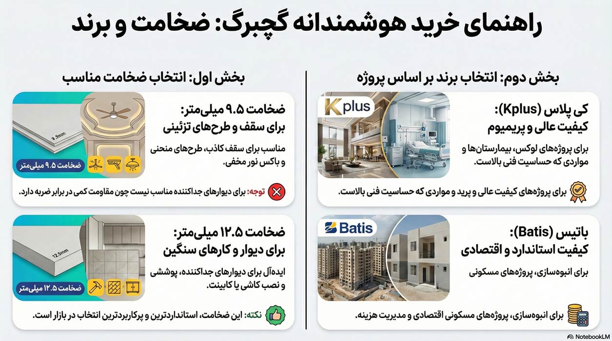 ۲. تفاوت گچبرگ ۹.۵ میل و ۱۲.۵ میل در چیست؟ کدام را بخریم؟تفاوت اصلی در مقاومت و محل کاربرد است:
