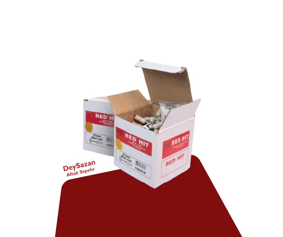 / میخ و چاشنی سرخود ردهیت RED HIT سایز 27 میلی متر مخصوص تفنگ میخکوب عصایی (بسته 100عددی)